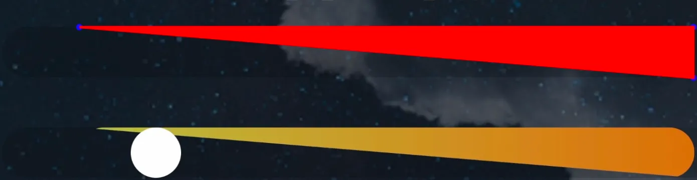 To make it more visual, I’ll add one more gradient element. On the top one I’ll show how the path is built, and on the bottom one you’ll see the final result after applying clip-path. Everything under red area will be visible. To make sure the white dot doesn’t distract you, I’ll hide it in the top element.
